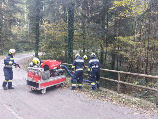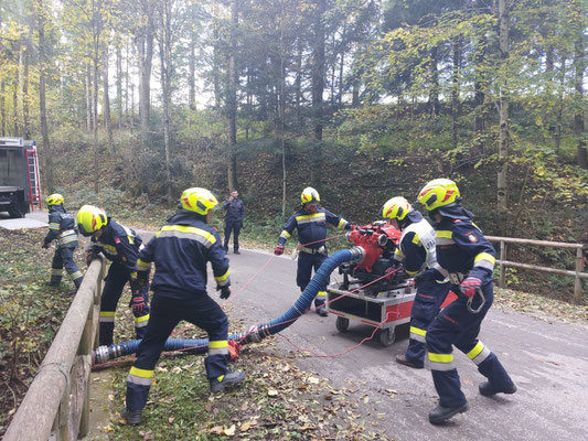 Alle 6 Feuerwehrn des Abschnitts 3 sowie die Feuerwehr Rohrbach mit dem TLFA 4000 waren bei der Übung mit dabei.